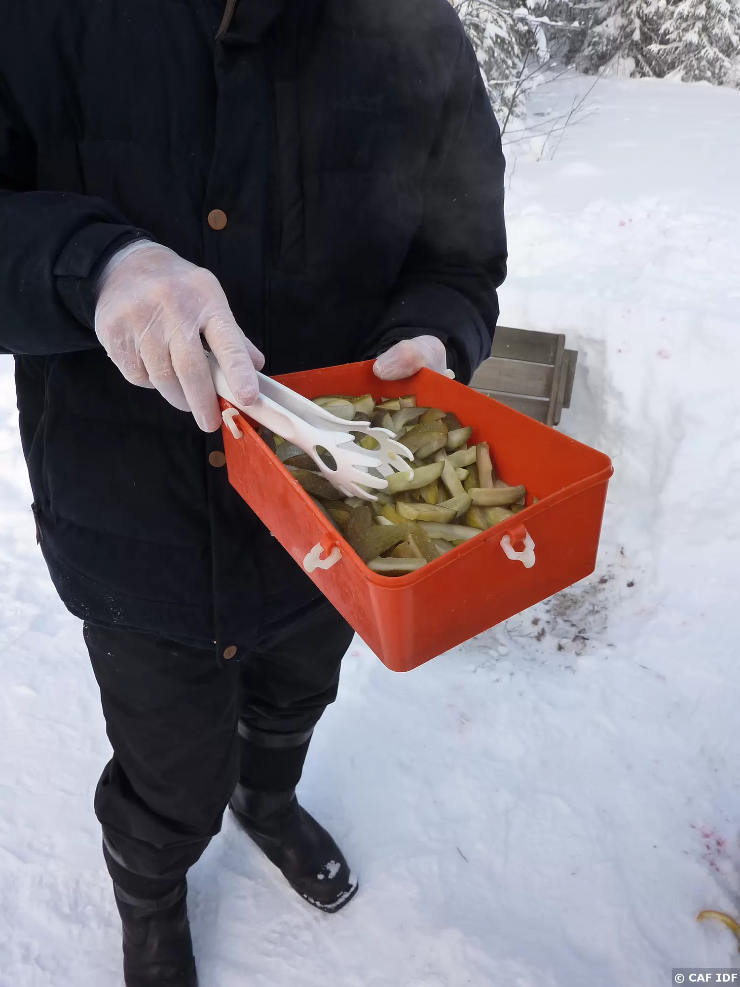 La logistique ce soir est réduite au minimum, un couchage, une salle pour les repas et un sauna.